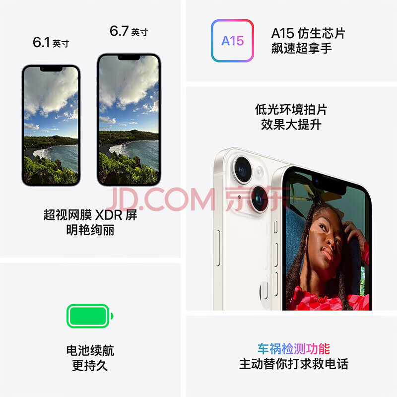 商品相册:Apple iPhone 14 512GB 蓝色A2884手机 支持移动联通电信5G MPXK3CH/A【企业客户专享】第