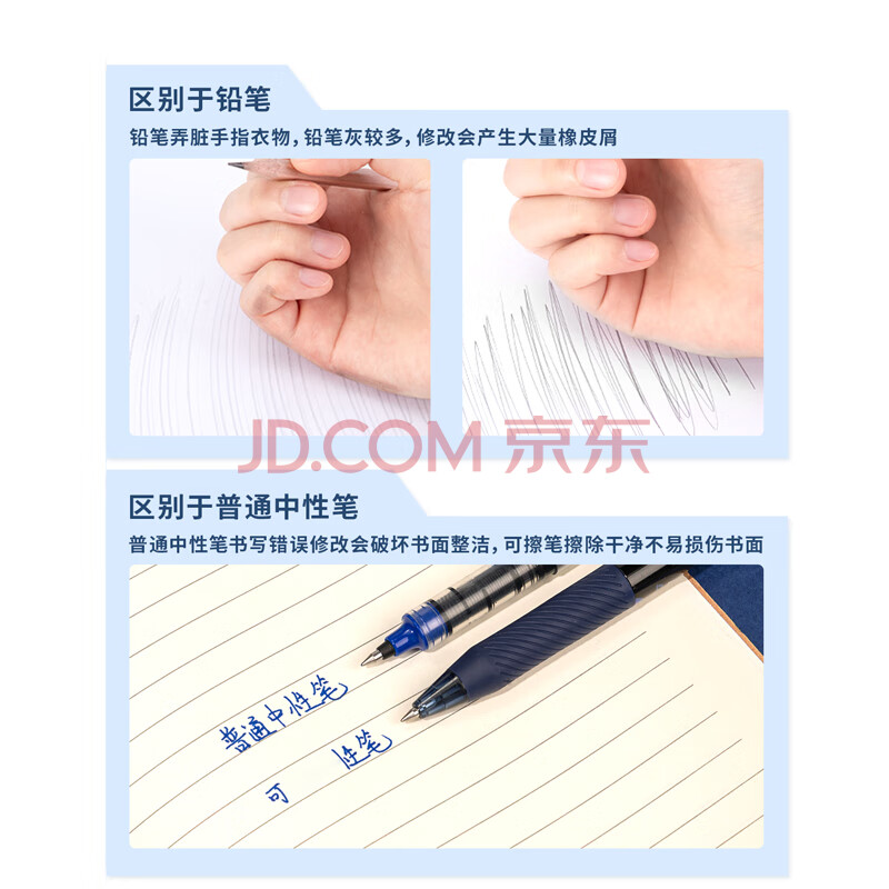商品相册:得力(deli)【热门商品】按动可擦中性笔 0.5mm子弹头学生中性笔 晶蓝 12支/盒 GT7第