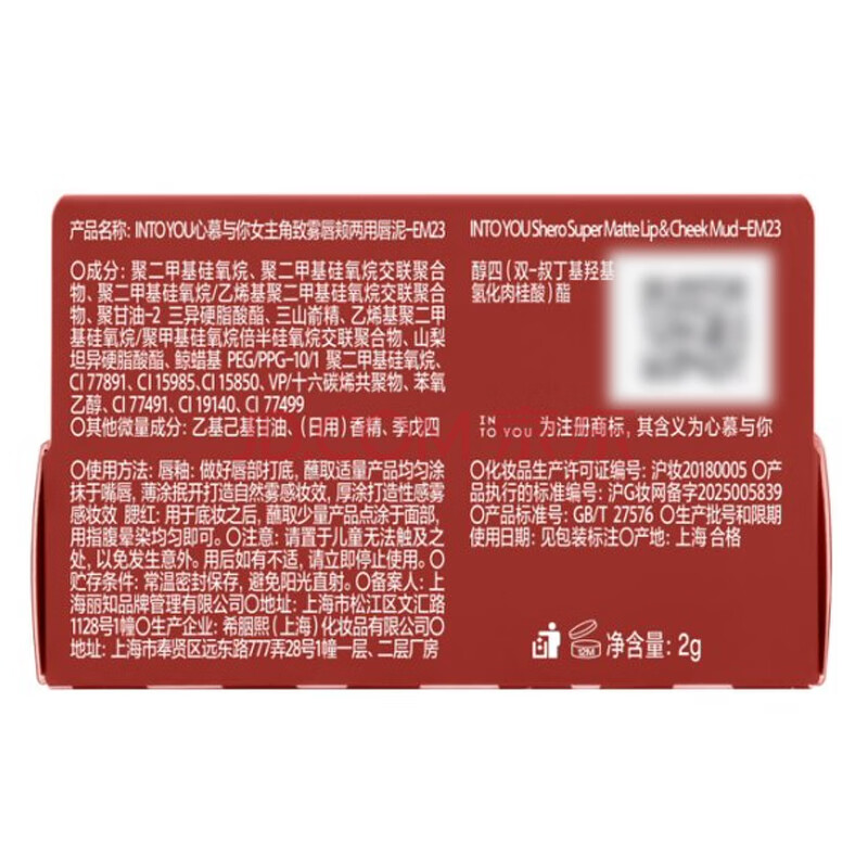 商品相册:INTO YOU女主角唇泥唇颊两用腮红唇釉哑光口红生日礼物送女生EM23红梅小豆第