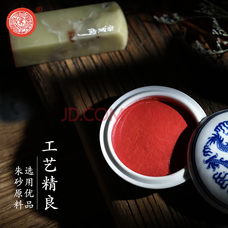 商品相册:荣宝斋 西泠印泥上海西泠印社潜泉 书法绘画篆刻印章古法红色龙泉书画印泥锦盒 朝晖印泥90克第
