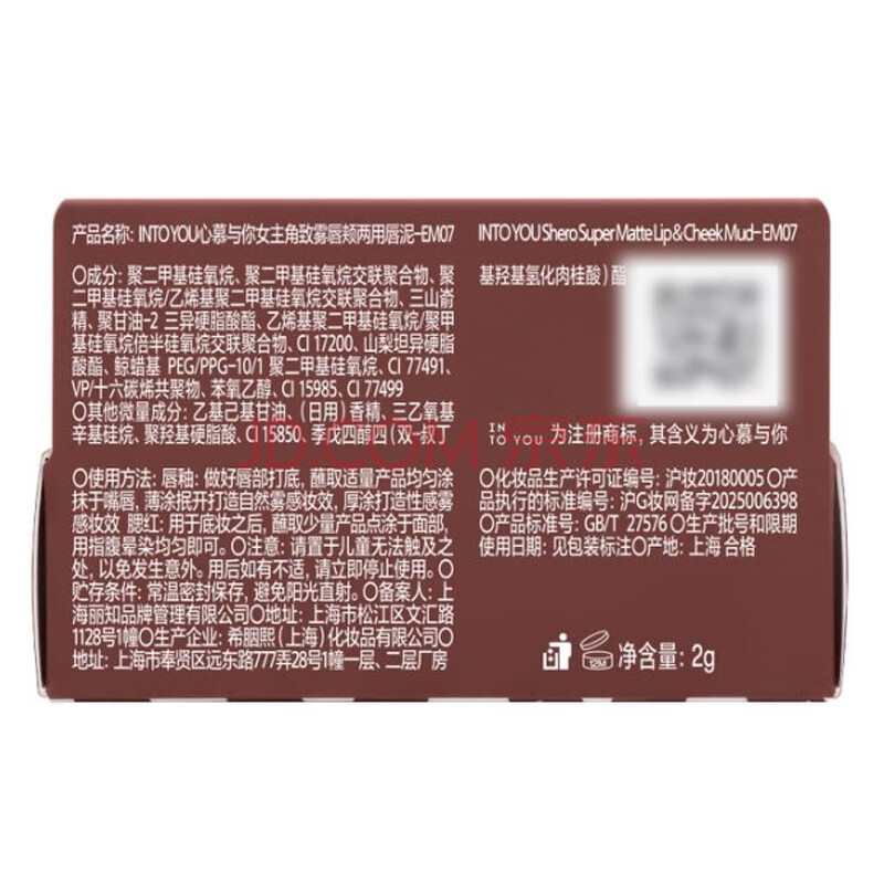 商品相册:INTO YOU女主角唇泥唇颊两用腮红唇釉哑光口红生日礼物送女生EM07深赤豆色第1张/共8