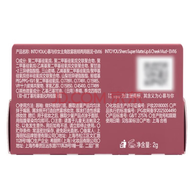 商品相册:INTO YOU女主角唇泥唇颊两用腮红唇釉哑光口红生日礼物送女生EM16海盐玫瑰第