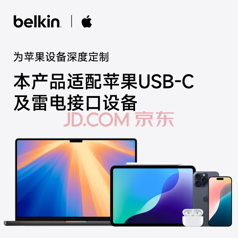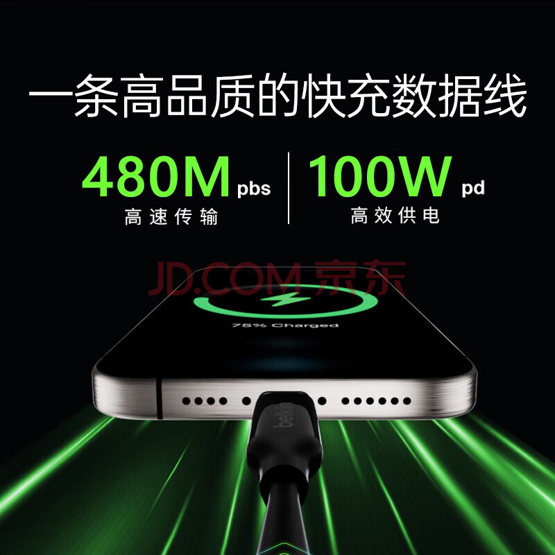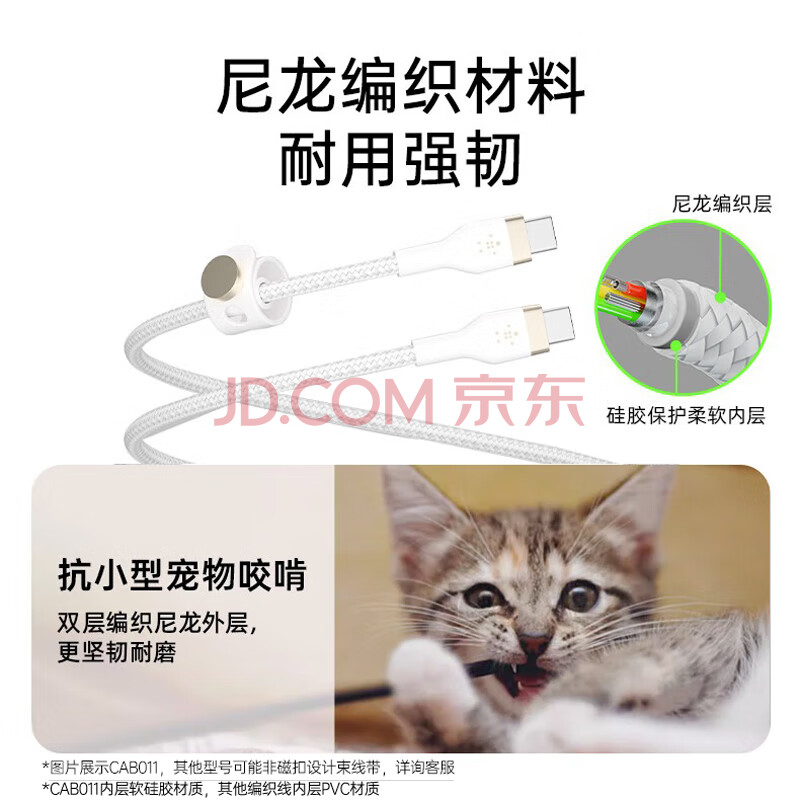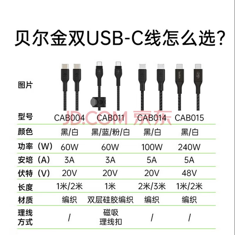 商品相册:贝尔金(BELKIN)数据线 100W快充 Type-C充电线 PD快充 苹果笔记本电脑充电 3米编织线白色 CAB014第