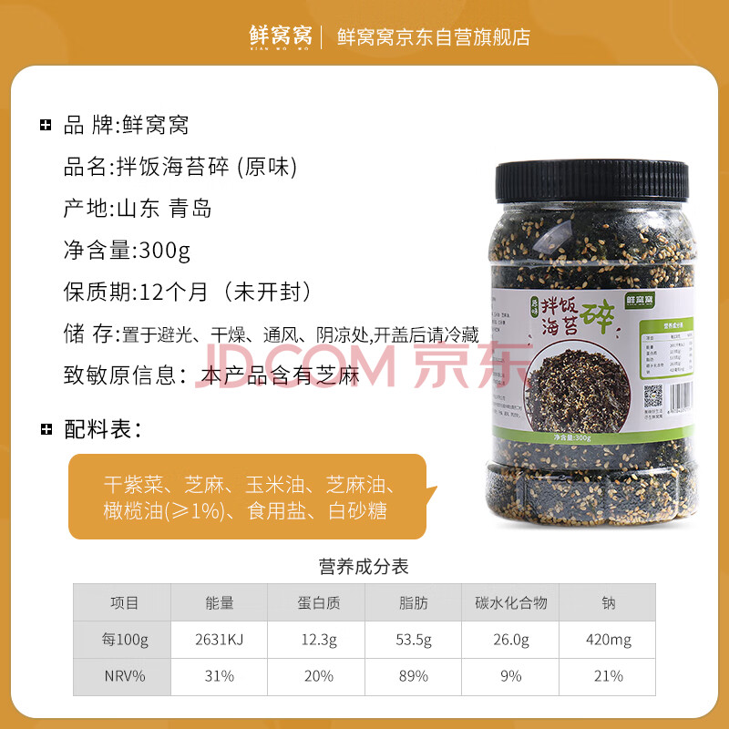 商品相册:鲜窝窝 拌饭海苔碎300g 即食宝宝海苔碎拌饭 高蛋白儿童零食寿司饭团第