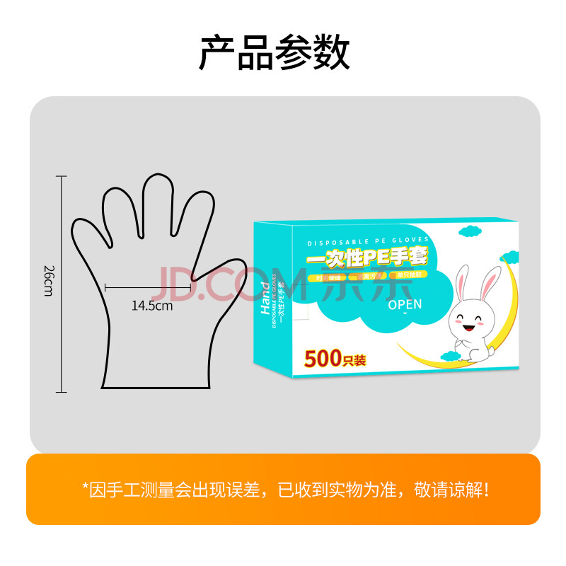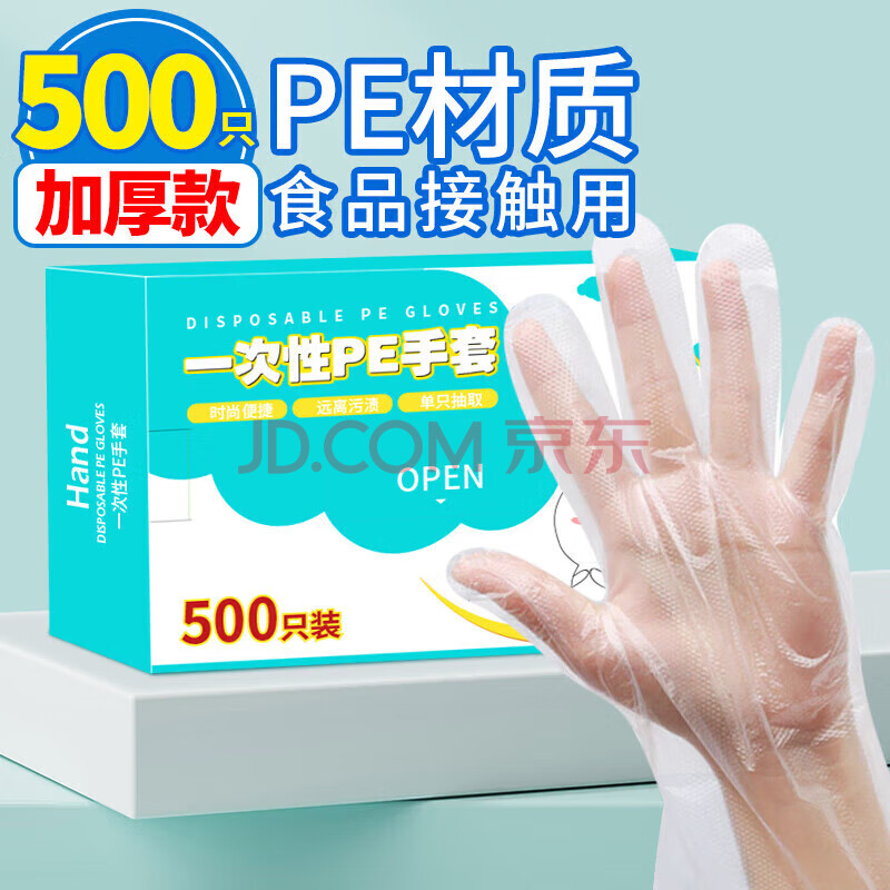 商品相册:优奥 一次性手套500只盒装抽取式 食品手套 加厚防漏塑料PE卫生手套 第