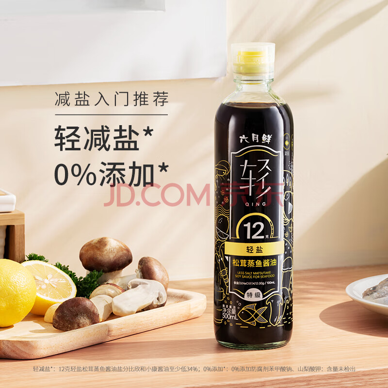 商品相册:六月鲜轻系列12克轻盐松茸蒸鱼酱油500ml【减盐 特级酱油】炒菜欣和出品第