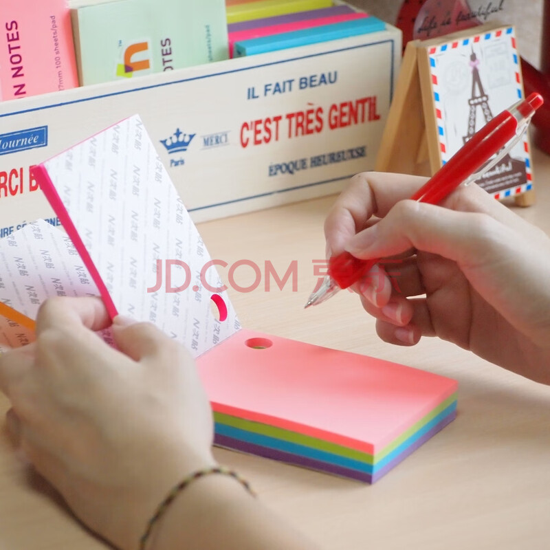商品相册:N次贴(STICKN)单挑炫彩便利贴便签纸记事贴76*51mm自粘留言本荧光5色 笔座式125张/本 33012第