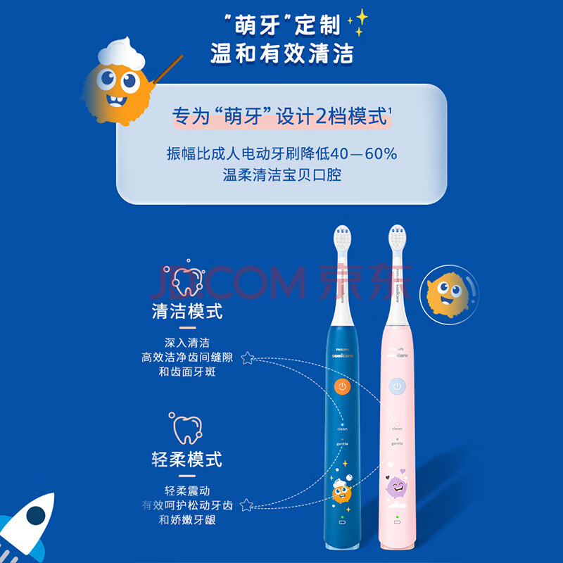 商品相册:飞利浦(PHILIPS)电动牙刷 儿童牙刷 儿童学生生日礼物 蓝牙版适用4-6-12岁2种模式 自带2支刷头粉HX2432/02 粉色第