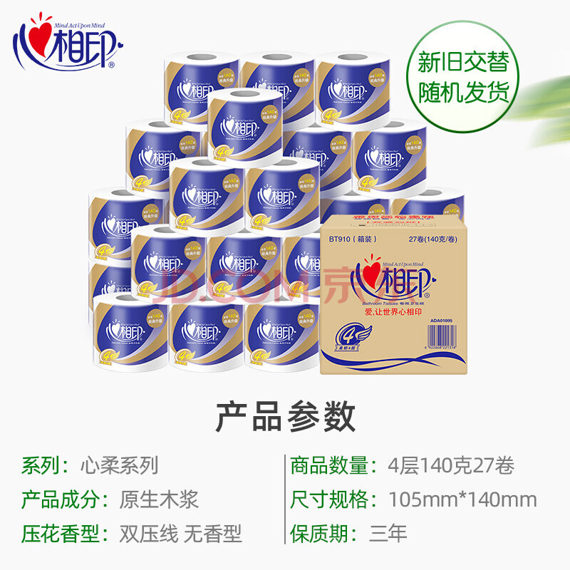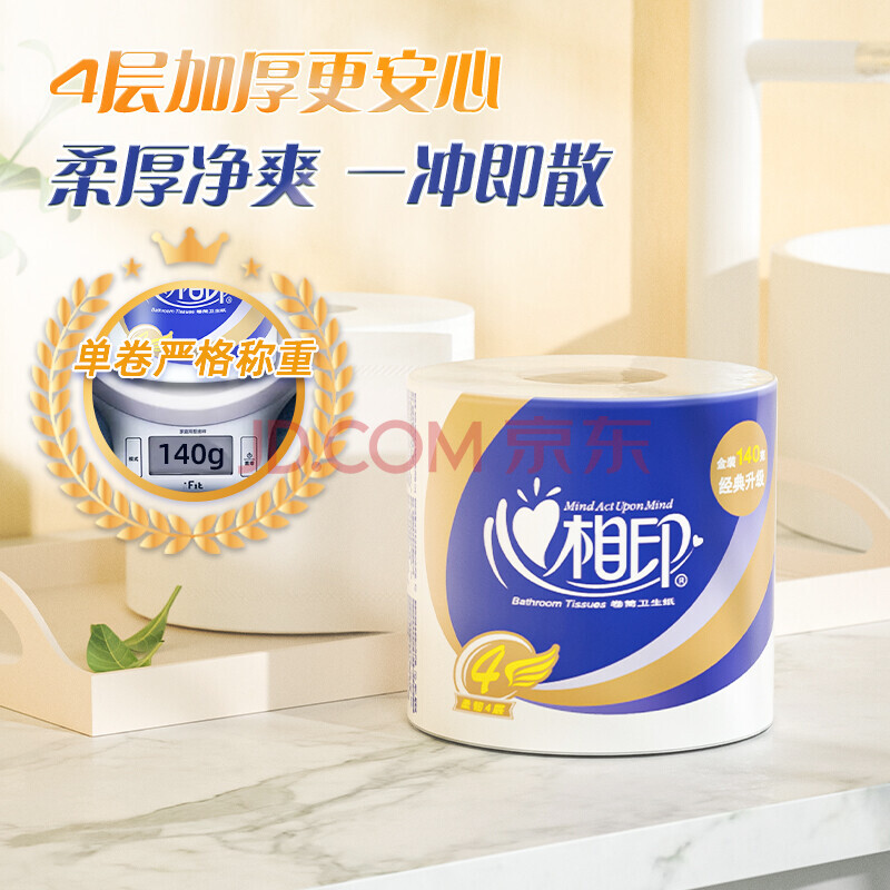 商品相册:心相印卷纸厕纸卫生纸巾有芯心柔4层卷筒纸140g27卷整箱实惠第