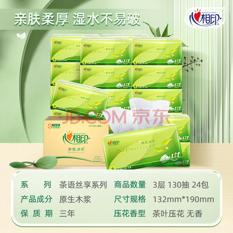 商品相册:心相印抽纸24包130抽纸巾卫生纸餐巾纸家用擦手纸整箱实惠装第