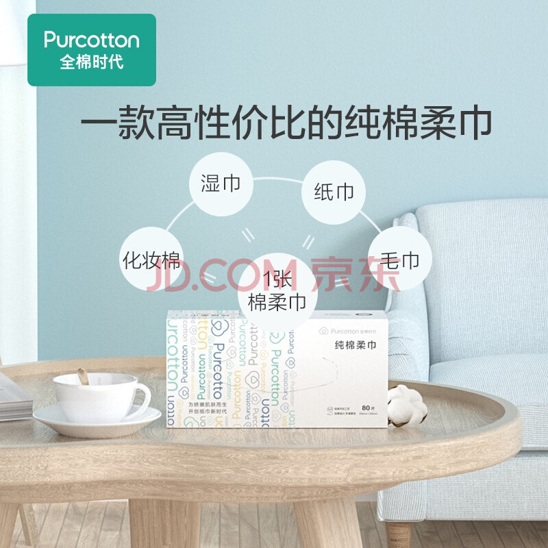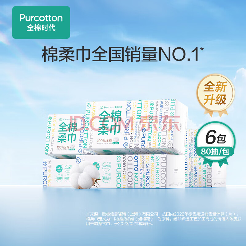 商品相册:全棉时代 洗脸巾一次性洁面巾家用棉柔巾擦脸巾200mm×200mm 80片*6盒第