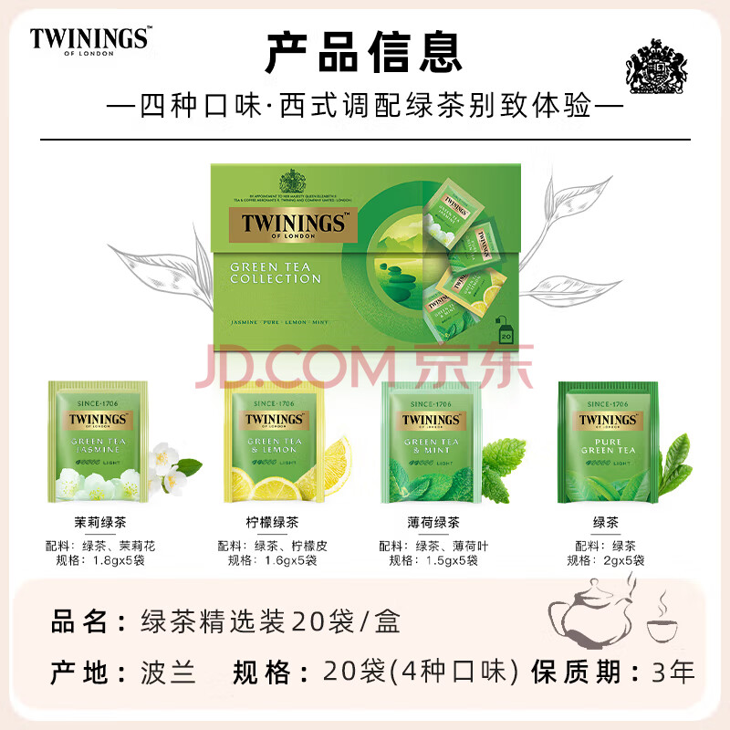 商品相册:川宁英式绿茶精选四味20袋 袋泡茶办公室下午茶第