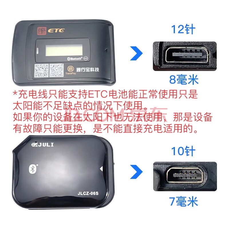 商品相册:轩邑 etc充电线车载数据线通用粤通卡溢速通中原通苏通卡万集金juli鲁通充电器快充线 12针 上下各6针第
