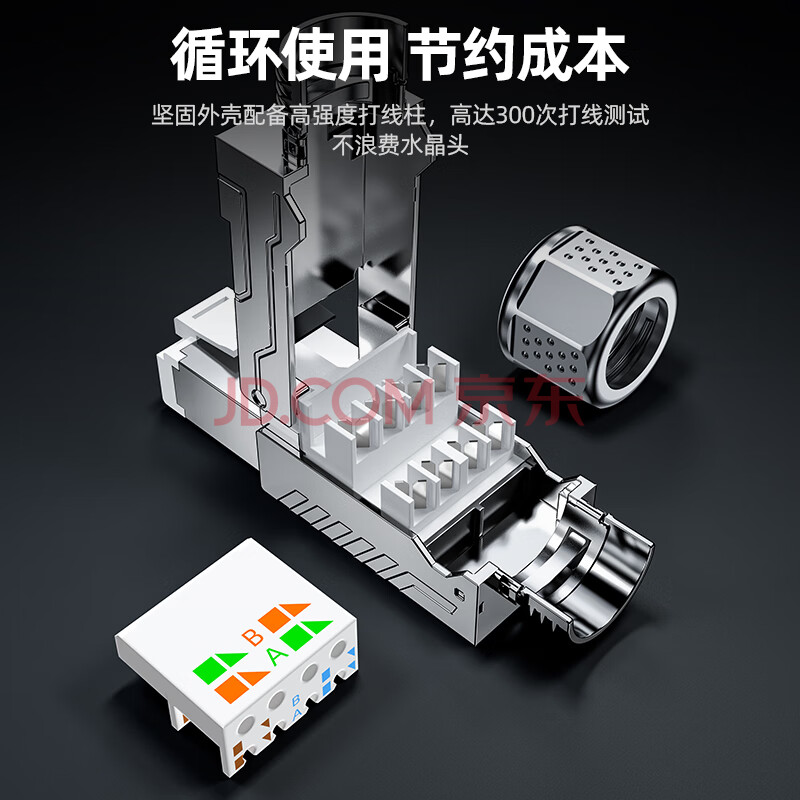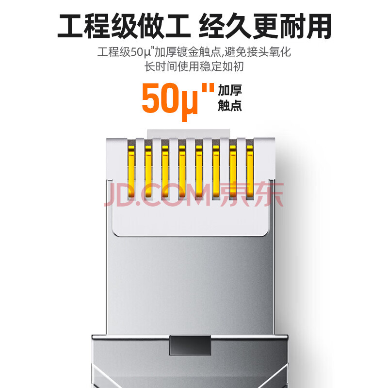 商品相册:山泽 超六类万兆屏蔽免打水晶头 工程级CAT6A免压RJ45网络接头 50U镀金超6类网线连接器 单个装 MDC63第
