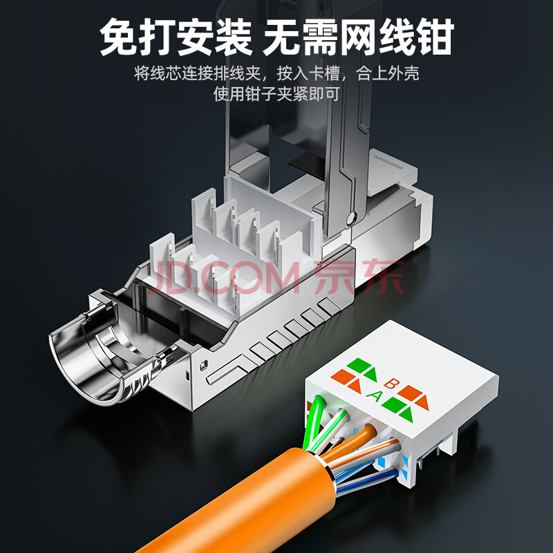 商品相册:山泽 七类万兆屏蔽免打水晶头 工程级CAT7免压RJ45网络镀金接头 50U镀金7类网线连接器 单个装 MDC73第