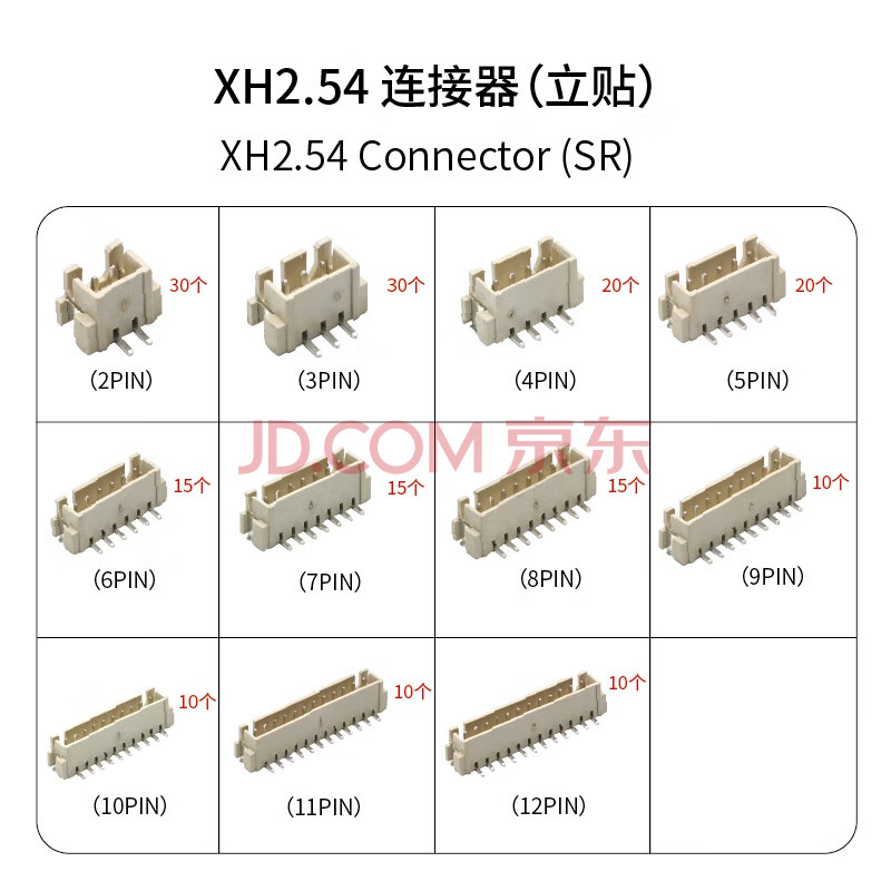 商品相册:丢石头 XH2.54连接器套装 2.54MM间距胶壳接线端子针插座 2~12PIN组合套件 立贴第