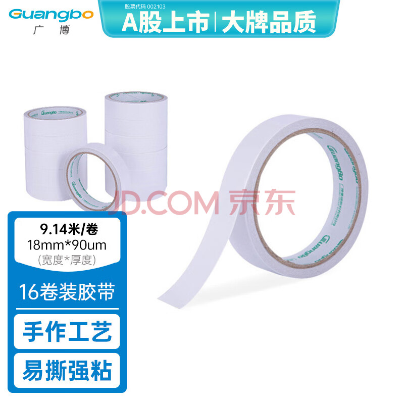 商品相册:广博(GuangBo)高粘性16卷装18mm*10y 9.14米/卷双面胶带棉纸两面胶布办公文具SM-10第1张/共8