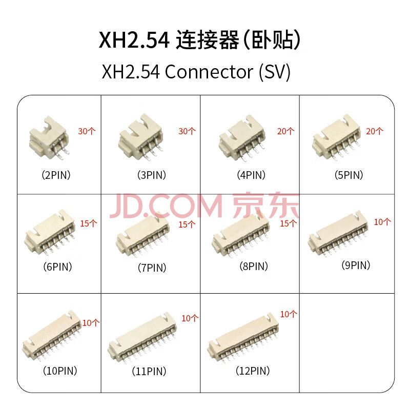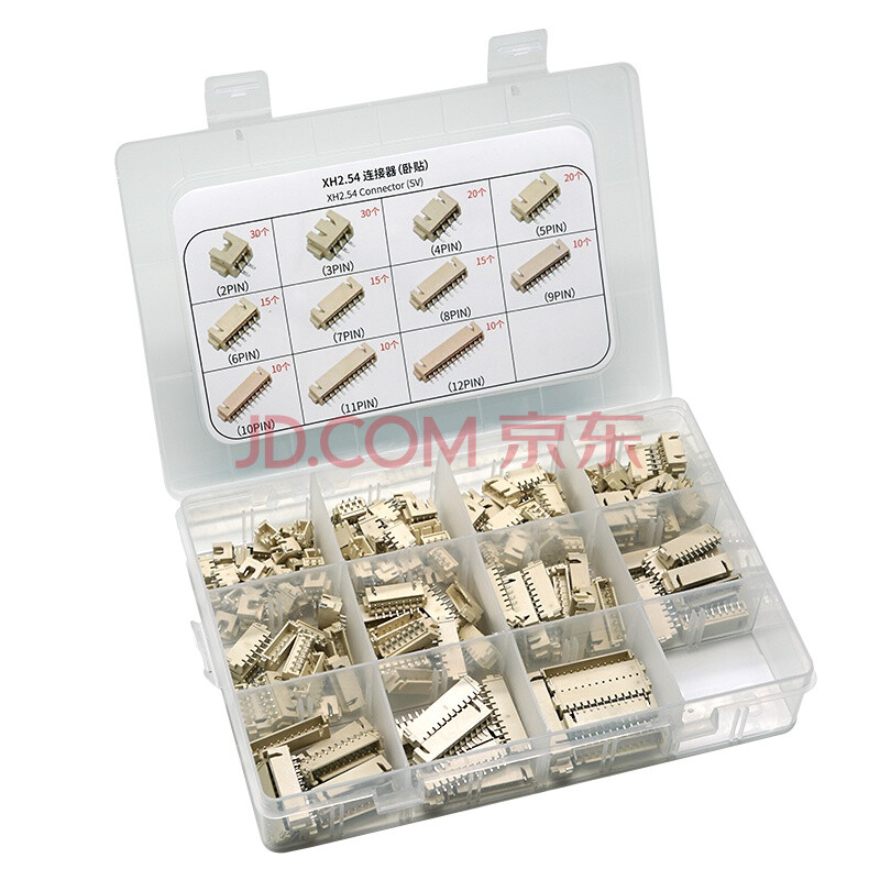 商品相册:丢石头 XH2.54连接器套装 2.54MM间距胶壳接线端子针插座 2~12PIN组合套件 卧贴第
