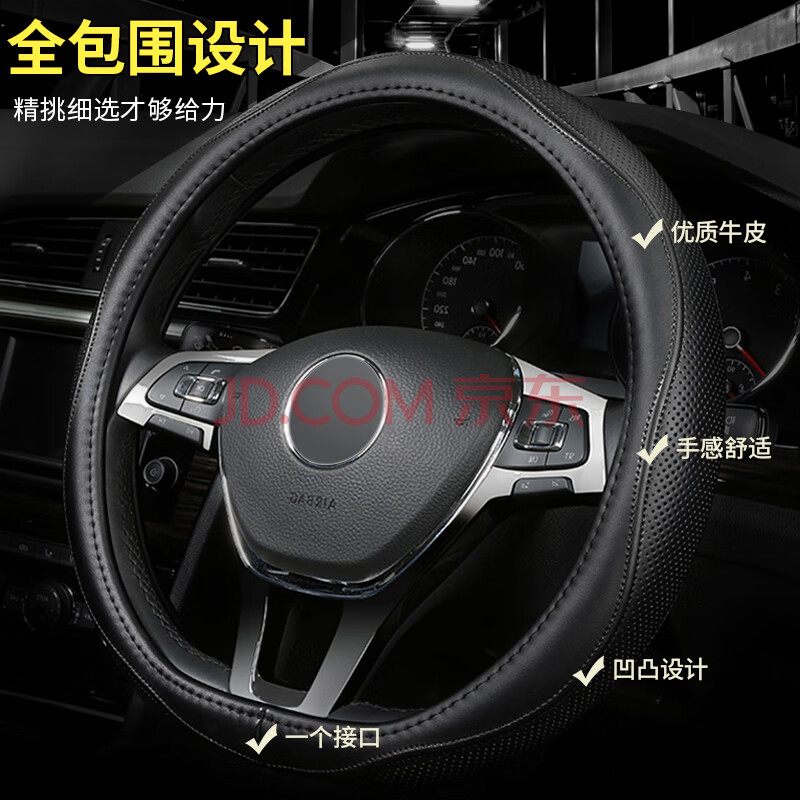 商品相册:端目方向盘套 比亚迪 专用 元 PLUS 宋 PRO 唐 护卫舰 四季 牛皮 D黑第