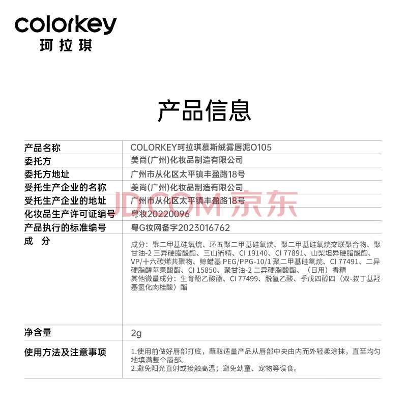 商品相册:Color Key珂拉琪小彩弹唇泥雾面哑光唇釉口红送女友老婆生日礼物O105第