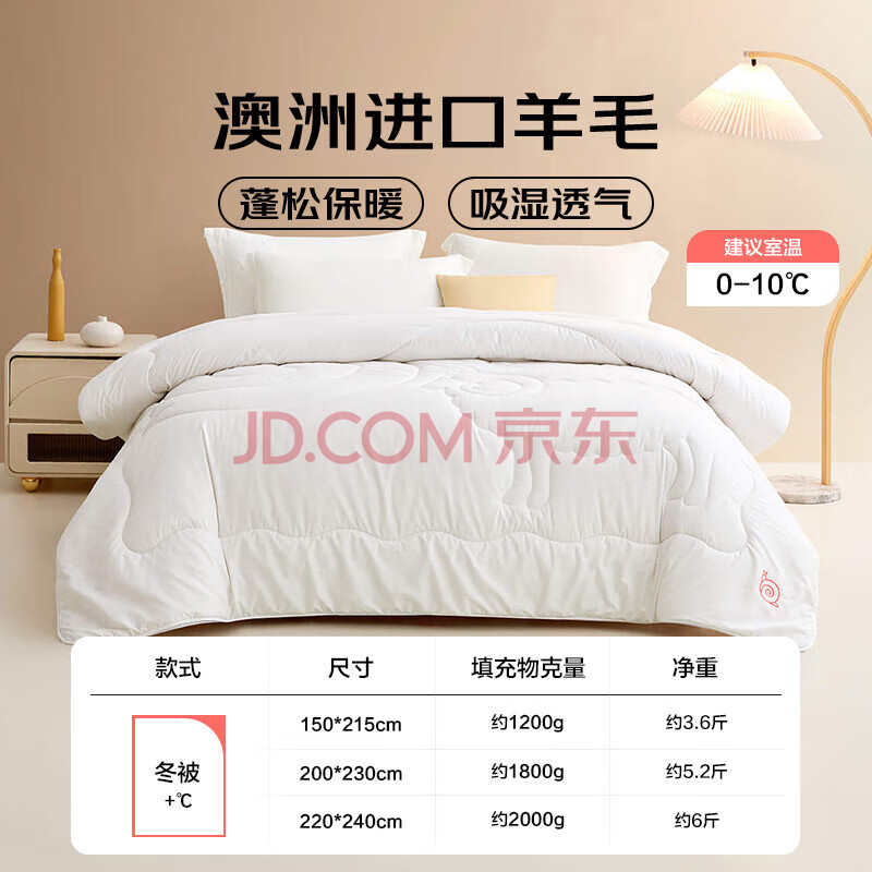 商品相册:LOVO罗莱家纺 澳洲进口羊毛冬被子5.2斤200x230cm白色第1张/共3