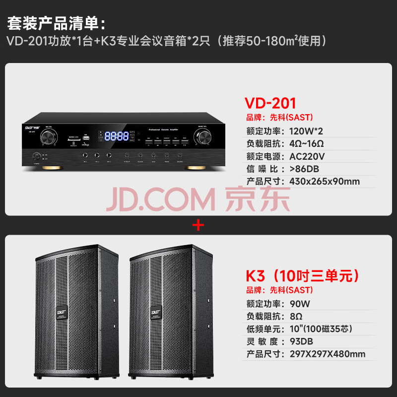 商品相册:先科 会议室音响套装组合10英寸家庭KTV背景音乐培训会议专用设备系统蓝牙功放壁挂音箱VD-201/K3第