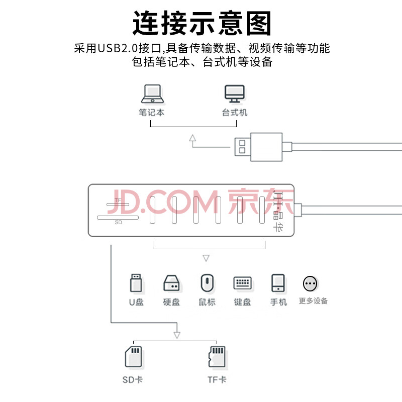 商品相册:晶华(JH)USB八合一高速读卡器 SD/TF多功能 笔记本电脑单反相机手机存储内存卡键盘鼠标U盘单反 黑色 Z304第