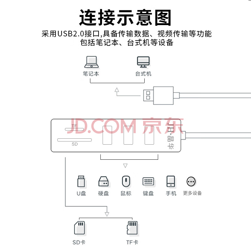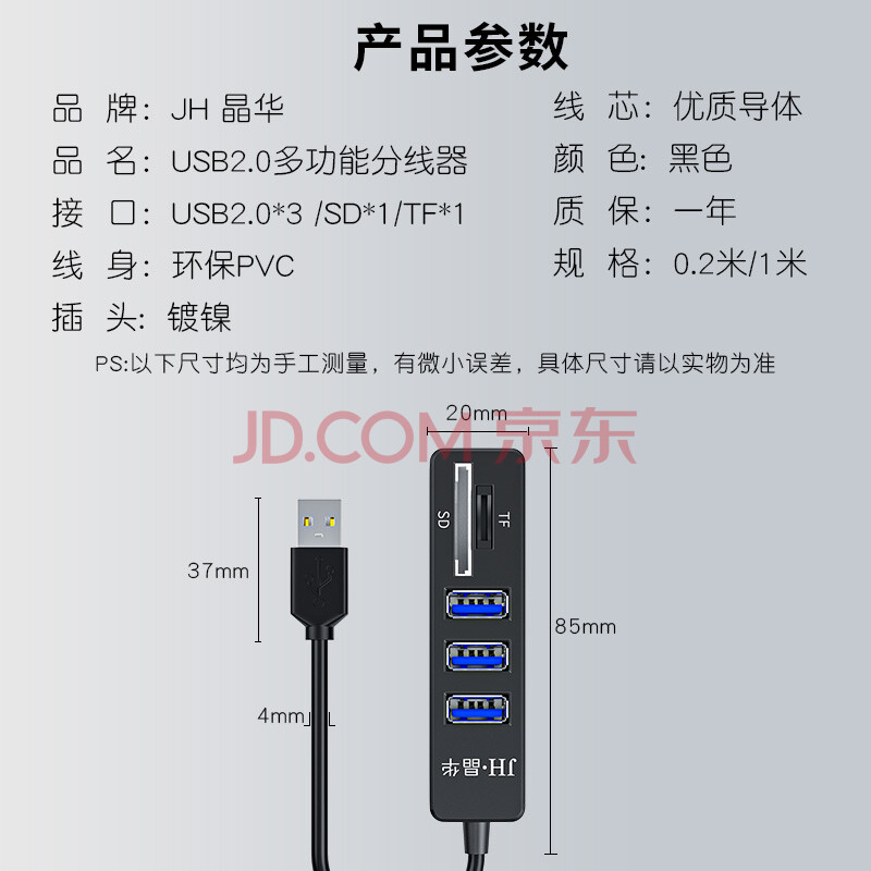 商品相册:晶华(JH)USB五合一高速读卡器 SD/TF多功能 笔记本电脑单反相机手机存储内存卡键盘鼠标U盘单反 黑色 Z303第
