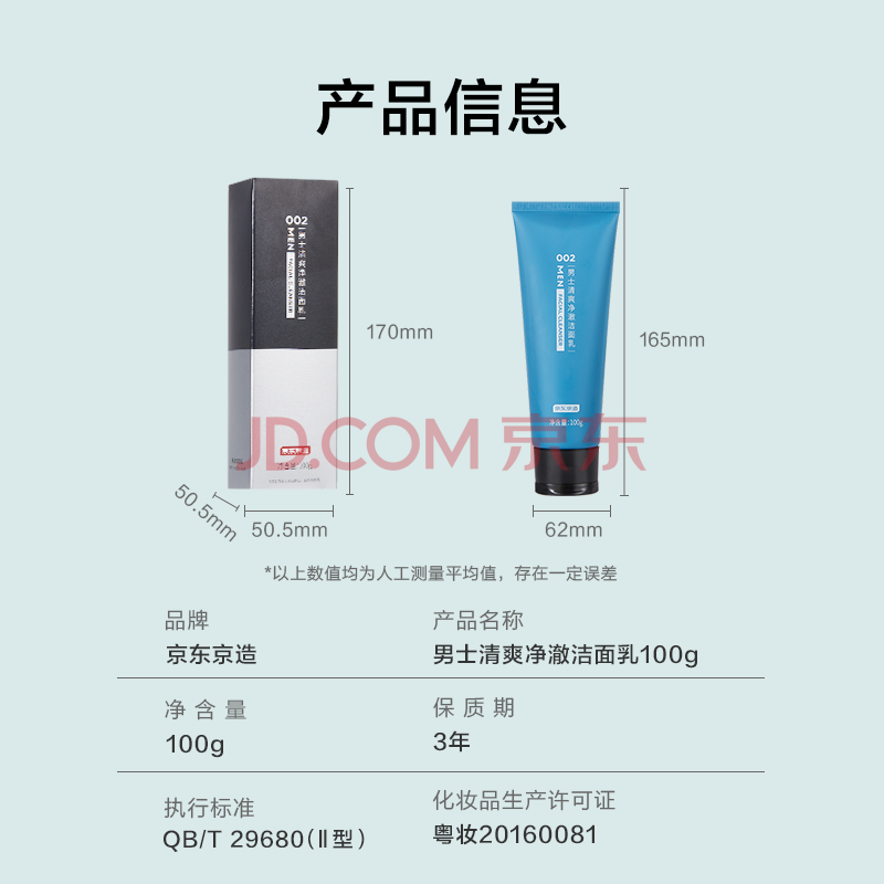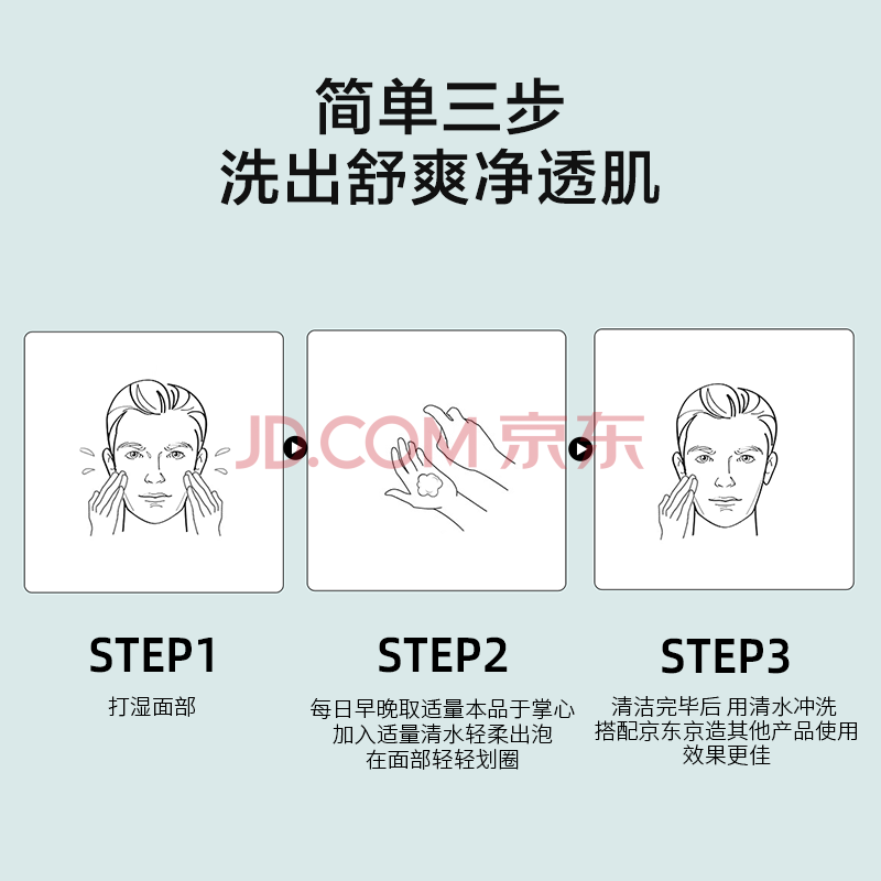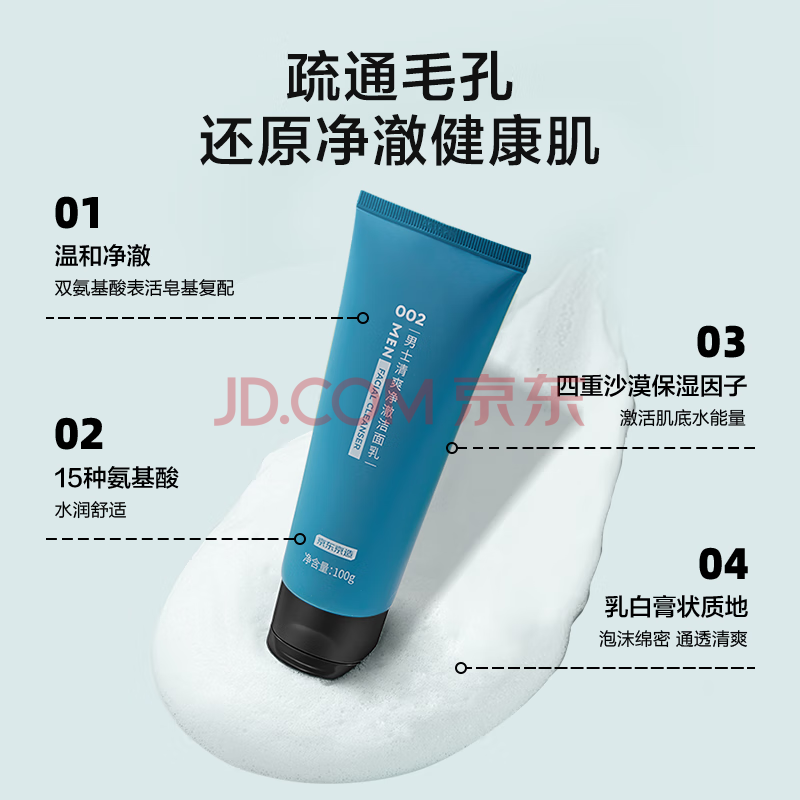 商品相册:京东京造男士清爽净澈洁面乳100g 强清洁氨基酸皂基复配 洗面奶洁面第