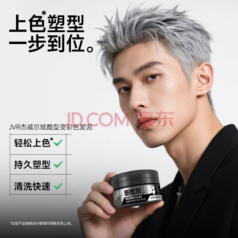 商品相册:杰威尔炫酷型变彩色发泥 一次性染发灰色发膏奶奶灰易上色持久定型男80g第