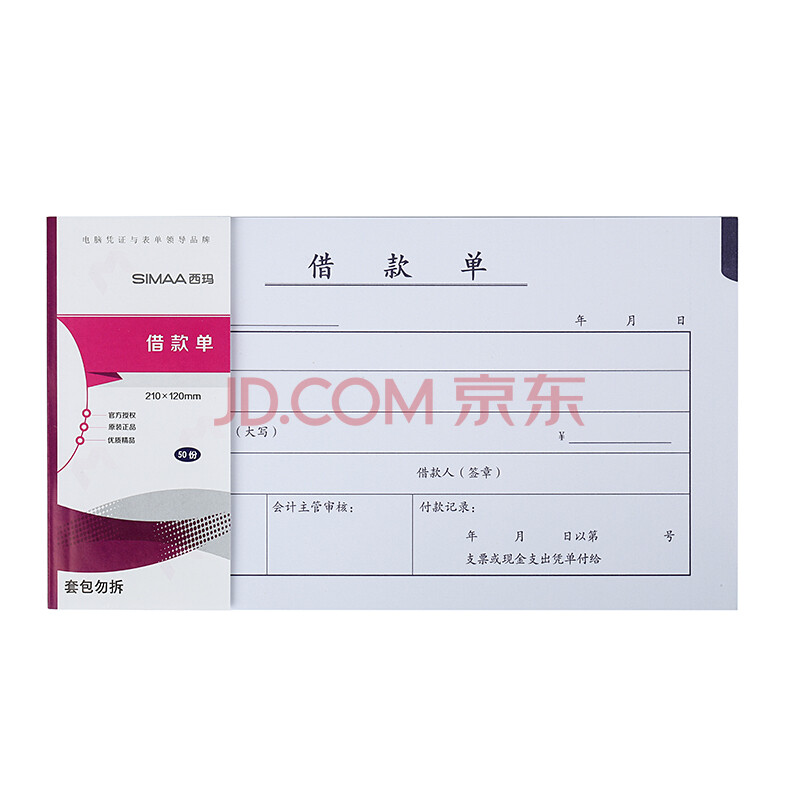商品相册:西玛(SIMAA)丙式-107借款单 财务手写单据210*120mm 50页/本 10本装第