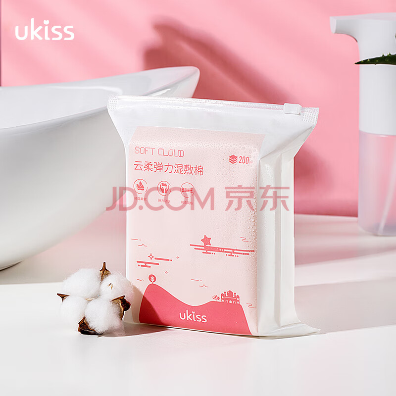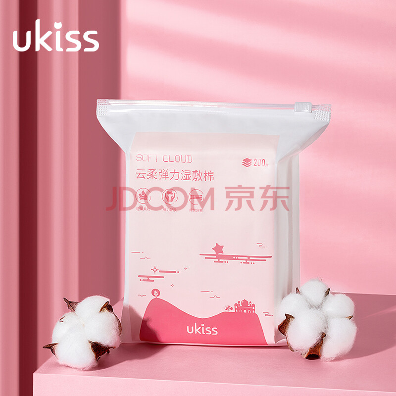 商品相册:悠珂思(ukiss)云柔弹力湿敷棉200片 可拉伸化妆棉省水卸妆敷脸专用面膜纸薄款第