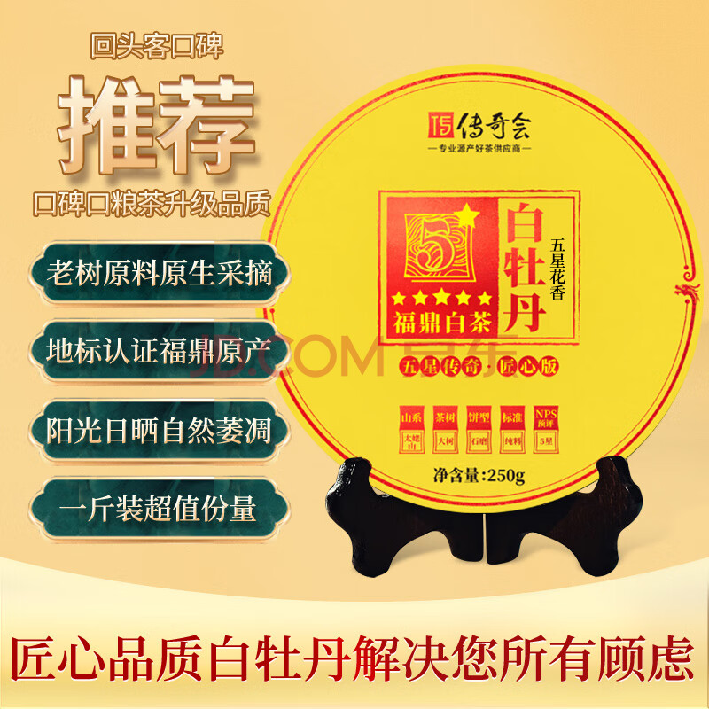 商品相册:传奇会茶叶白茶福鼎白茶陈香白牡丹紧压老白茶茶饼礼盒装500g自己喝送礼第