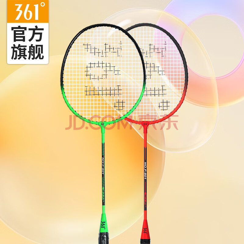 商品相册:361°羽毛球拍套装含手胶经典新手入门训练羽拍2支双拍已穿线【绿+橙】第