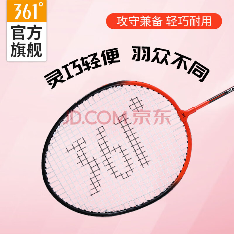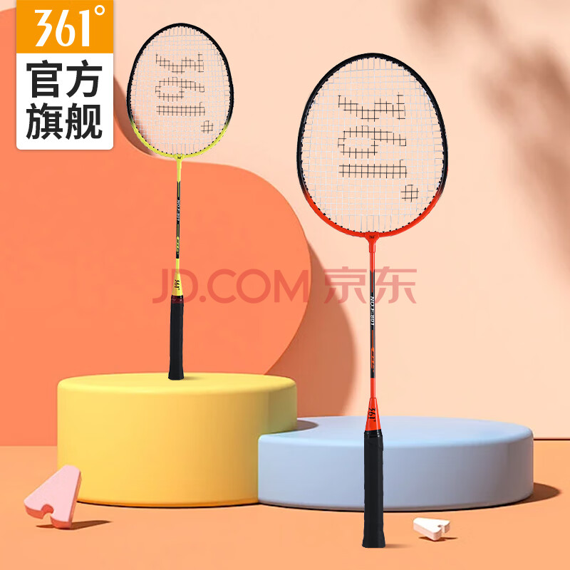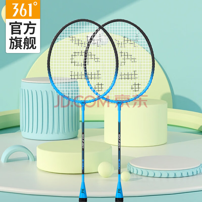 商品相册:361°羽毛球拍套装含手胶经典新手入门训练羽拍2支双拍已穿线【蓝色】第