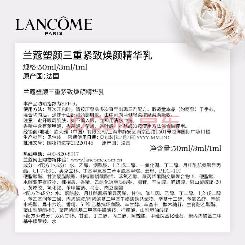 商品相册:兰蔻塑颜三管精华50ml 淡纹美白3管三重精华护肤品礼盒送女友生日礼物第