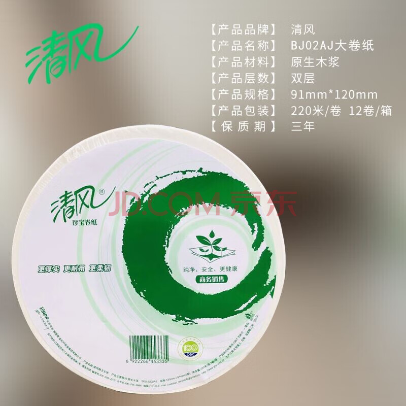 商品相册:清风 大卷纸2层220米12卷厕纸家用珍宝纸商用卫生纸 整箱销售 BJ02AJ 第