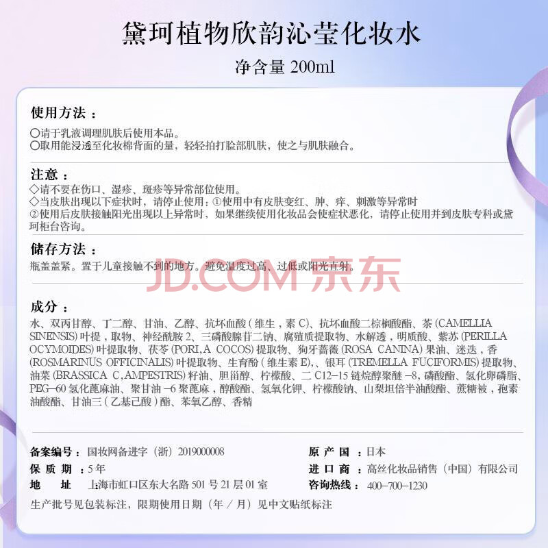 商品相册:黛珂植物欣韵弹润水乳护肤品套装200ml*2细致毛孔化妆品 生日礼物女第