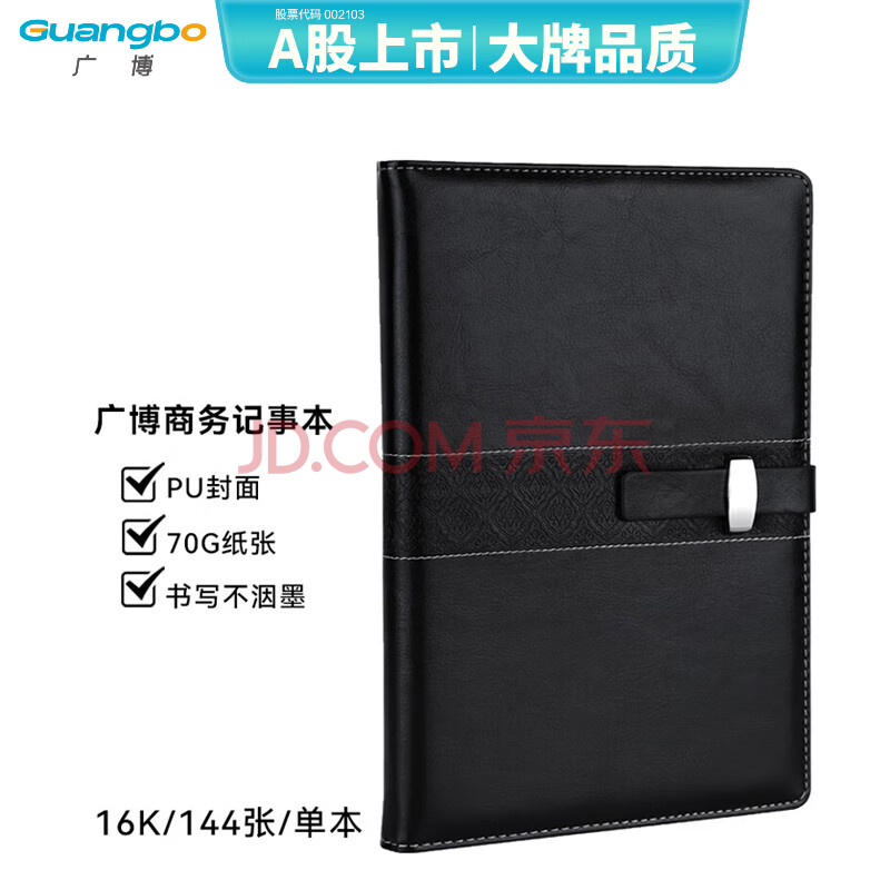 商品相册:广博(GuangBo)16K144张商务皮面记事本子文具笔记本/雅致插扣款黑色GBP16735第