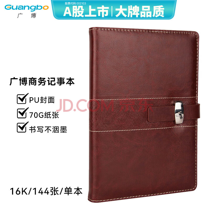 商品相册:广博(GuangBo)16K/144张商务笔记本子皮面本工作记事本子插扣款日记本办公用品 棕色GBP16735第