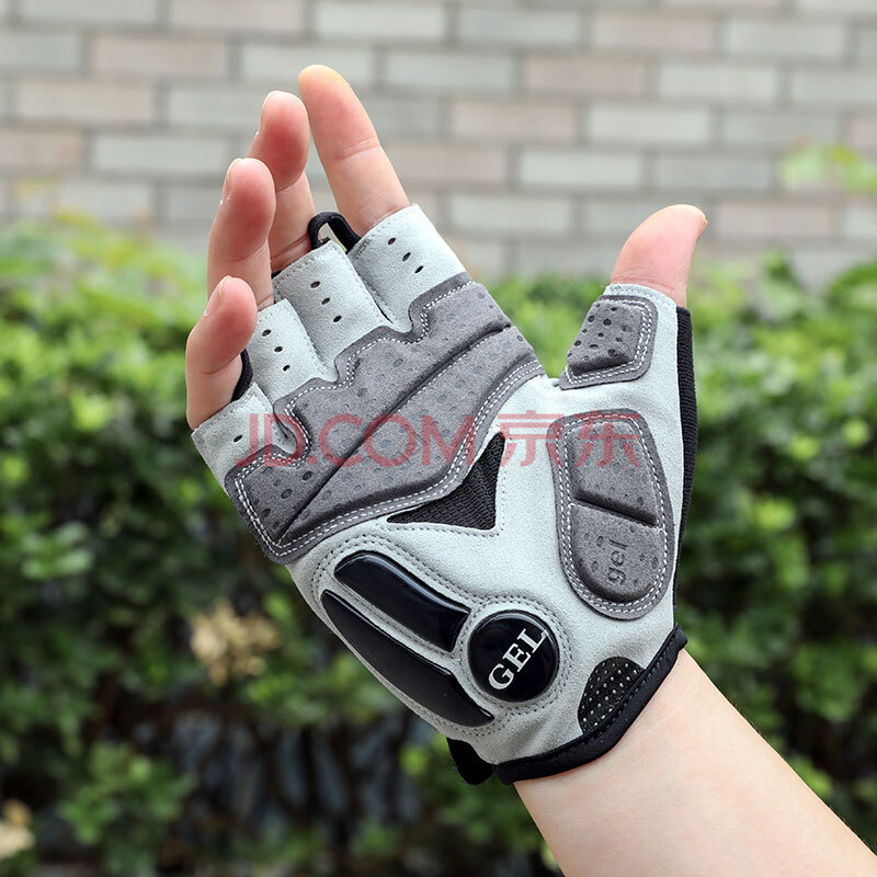 商品相册:CAVALRY自行车硅胶半指手套夏季户外运动健身手套 男女GEL短指山地车公路车减震排汗手套骑行装备 黑灰XL第