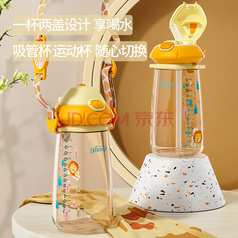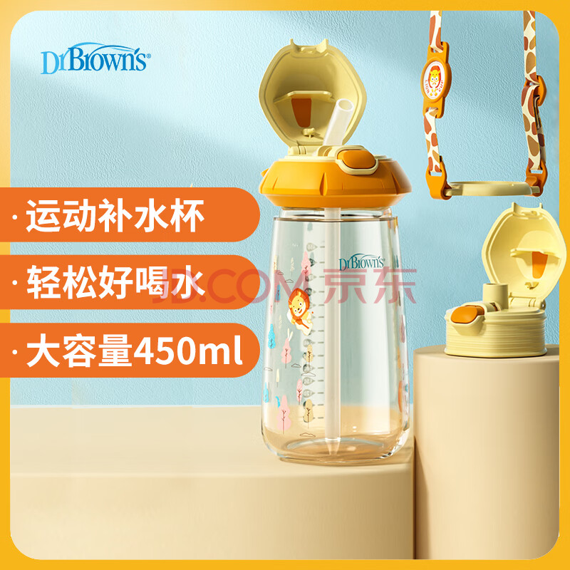 商品相册:布朗博士儿童吸管水杯 3-6岁幼儿园小学生可背水杯 轻便PPSU材质450ml第