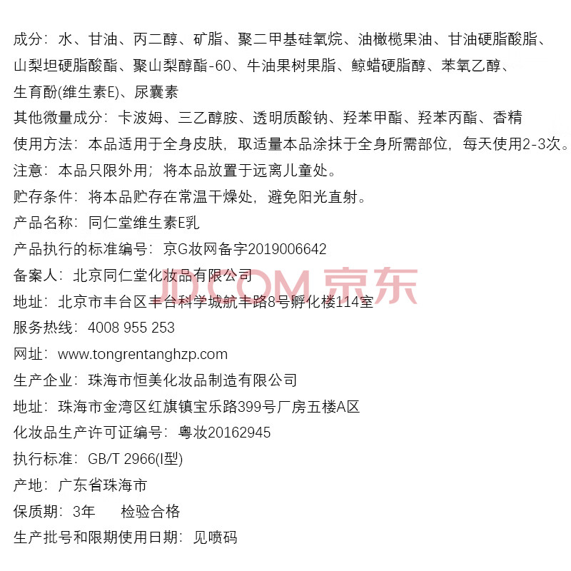 商品相册:同仁堂维生素e乳液 补水保湿滋润ve乳膏面霜 男女士春夏干燥护肤300ml第