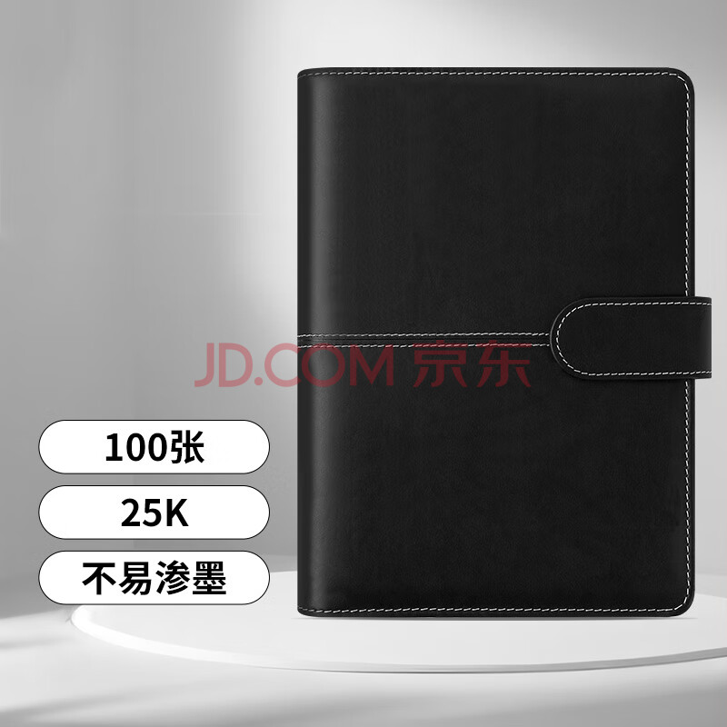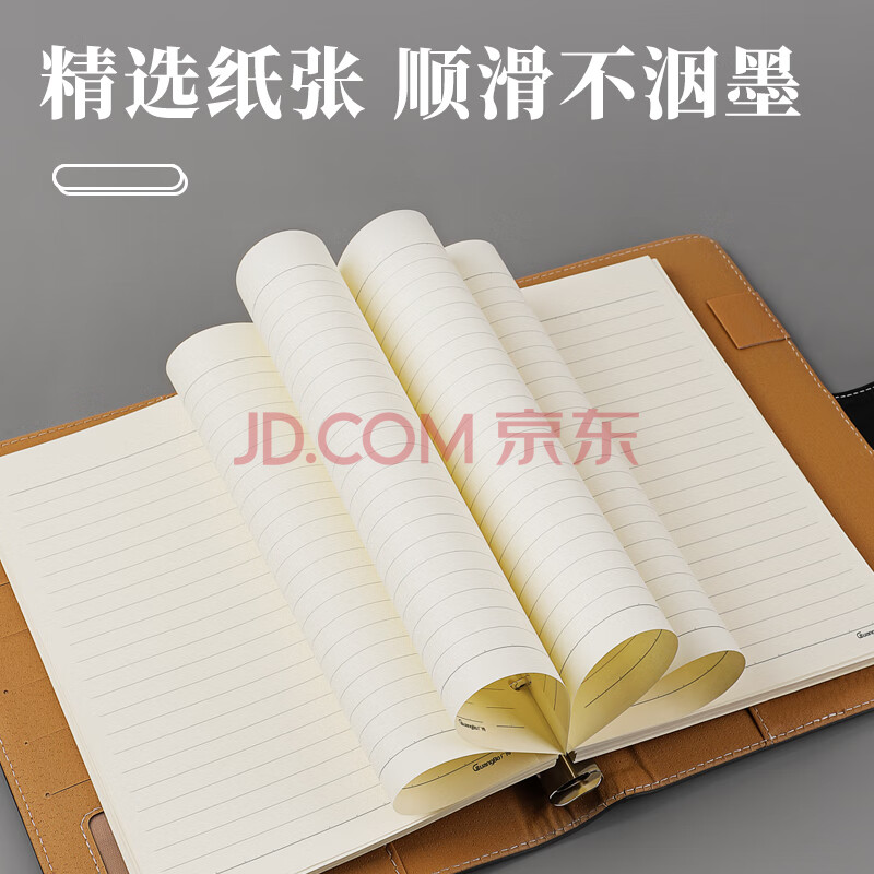 商品相册:广博(GuangBo)25K/100张商务笔记本子活页本工作记事本子日记本皮面本办公用品 黑色GBP8605第