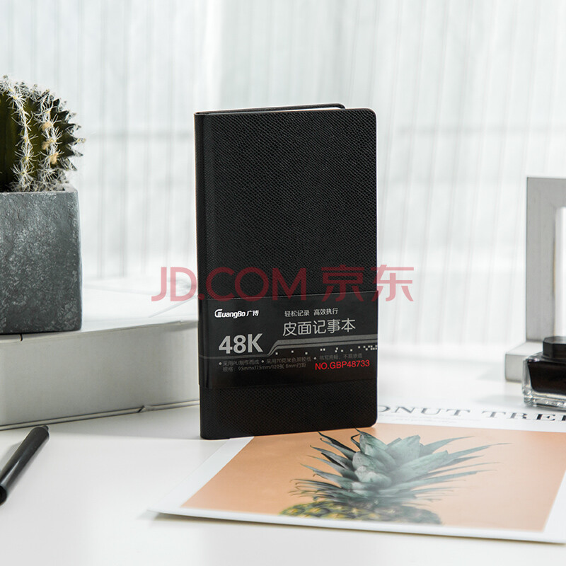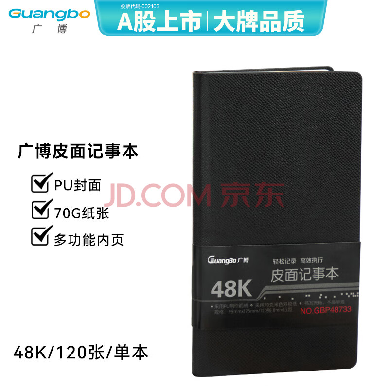 商品相册:广博(GuangBo)48K随身笔记本子/简约硬挺商务皮面记事本 120张 黑色GBP48733第