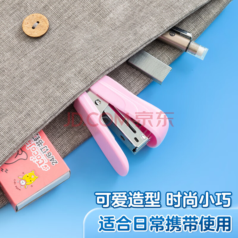 商品相册:晨光(M&G)文具12#订书机 小型迷你便携 学生订书器组合套装(订书器+订书钉)粉色ABS91649第