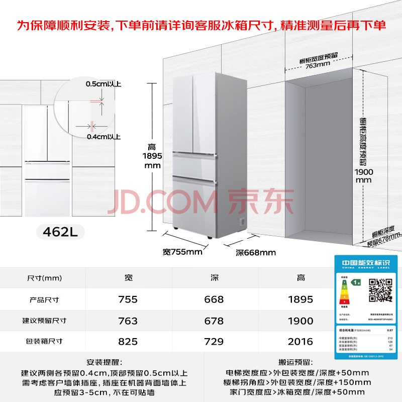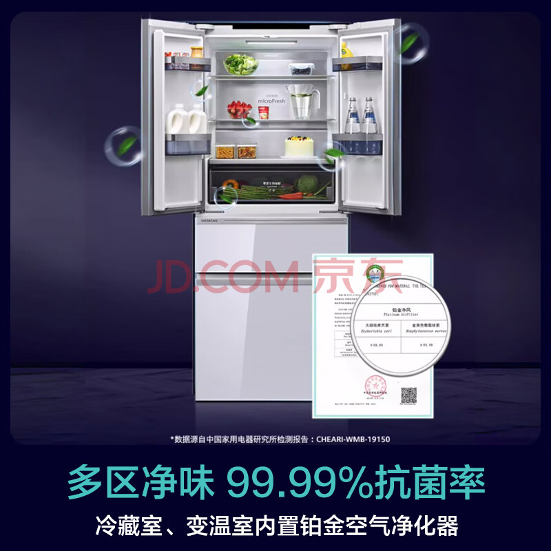 商品相册:西门子冰箱462升法式四开多门超薄零嵌入一级能效风冷无霜变频零度保鲜大容量比例们KF72FVA20C第