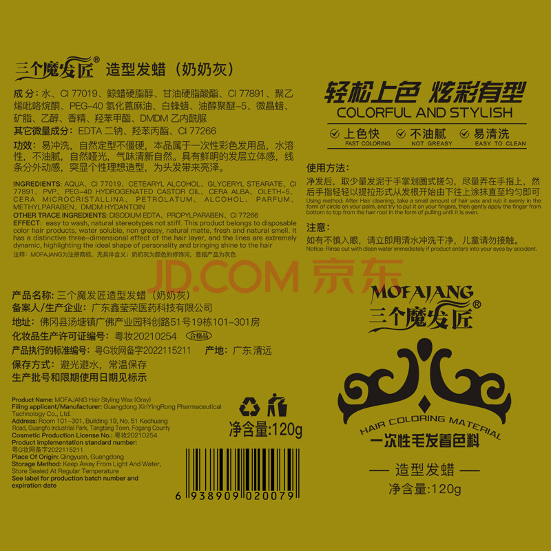 商品相册:三个魔发匠奶奶灰发泥强塑型自然蓬松发蜡120g男女士清爽造型发蜡定型持久第