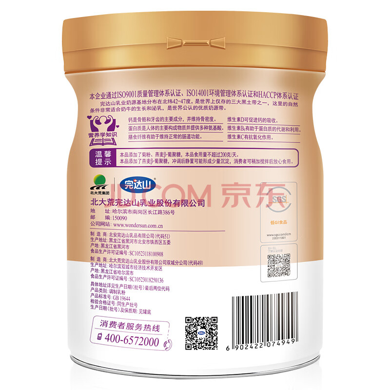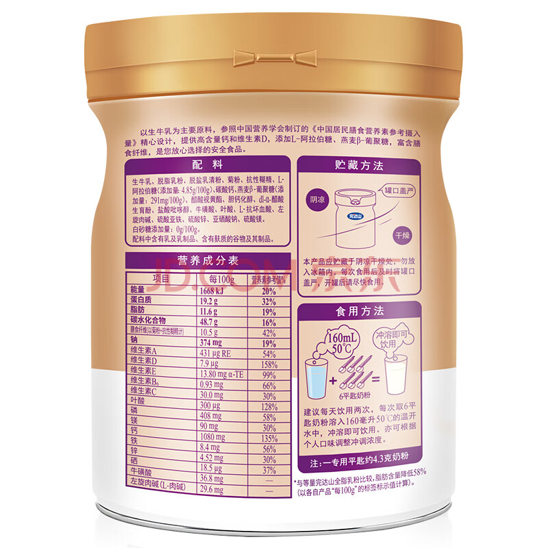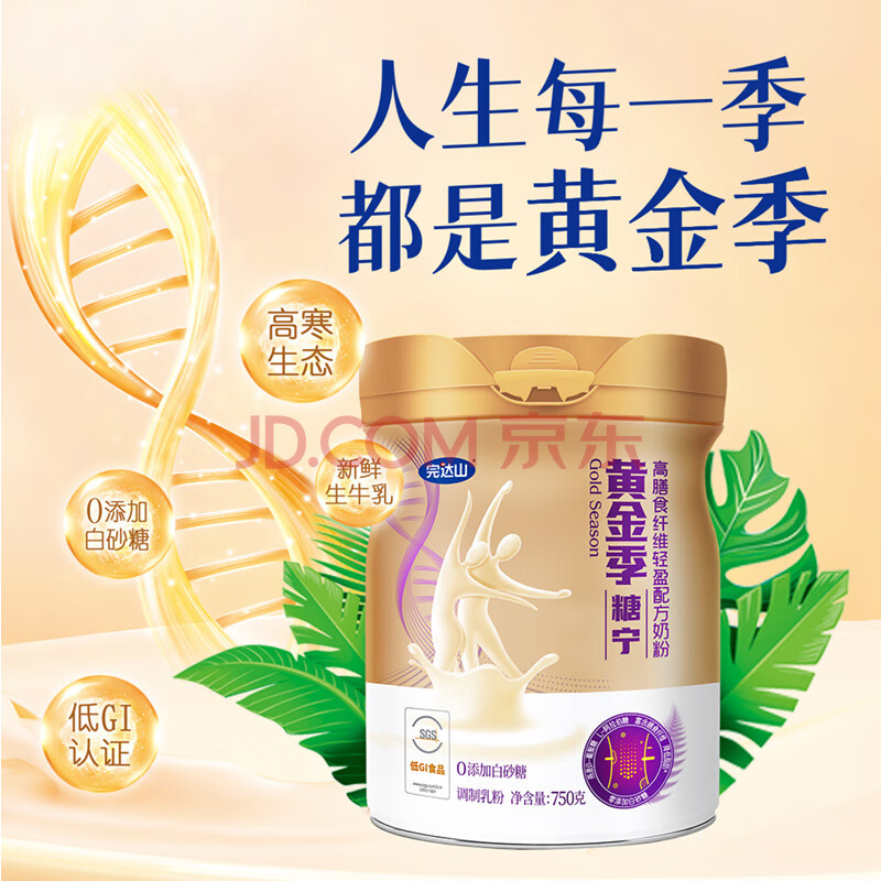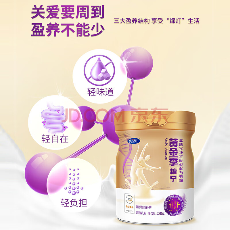 商品相册:完达山黄金季糖宁 低GI食品 高膳食纤维 0白砂糖添加中老年全家奶粉750g第