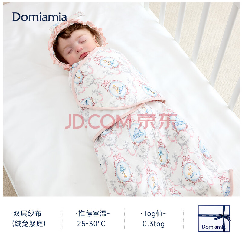 商品相册:DOMIAMIA婴儿睡袋防惊跳包裹式初生睡袋双层纱布新生儿NB段四季通用第